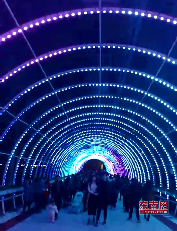 璀璨絢麗燈光扮靚莆田夜景 東南網(wǎng)莆田2月22日訊(本網(wǎng)記者 王龍風(fēng))火樹銀花,燈水交融,流光溢彩,夜色輝煌。春節(jié)期間正式亮燈的莆田泗華溪、綬溪公園華麗夜景,成為許多市民夜間游玩不可錯(cuò)過的絕佳去處,每天都有許多市民沿著泗華古橋—星光隧道—新延壽橋底—過溪橋—延壽古橋,這一“夜游畫廊”,一睹兩溪公園璀璨夜景的風(fēng)采。 正月初六(2月21日),是春節(jié)長(zhǎng)假的最后一個(gè)夜晚,東南網(wǎng)記者來到泗華溪、綬溪公園看到,處處色彩斑斕,一片燈火輝煌景象。走進(jìn)公園內(nèi),一路上游人如織,來來往往好不熱鬧。色彩變換炫動(dòng)的星光隧道,更是吸引了許多市民前來穿梭體驗(yàn),許多小孩興奮地追逐著地面上游動(dòng)的“魚兒”。