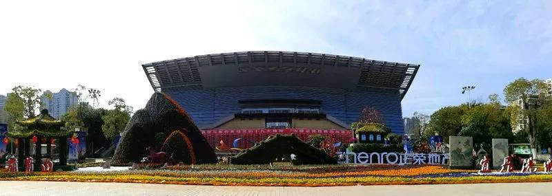 體育中心綜合館前廣場迎春花壇占地面積約800平方米,高6.8米,長28米,寬30米。