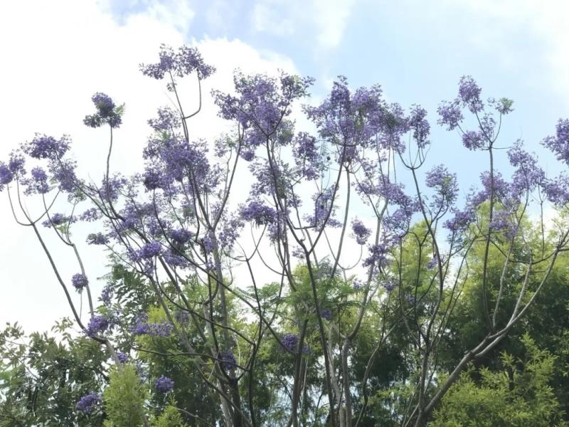 五月天,暑氣漸起。 蟬漸噪,衣愈輕。 綬溪公園,草木正蔥蘢。 一抬頭, 園內(nèi)爛漫花開的藍(lán)花楹引入眼簾。