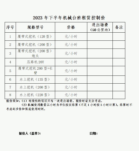 莆田城市園林發(fā)展集團有限公司關(guān)于2023年下半年機械臺班租賃控制價征集公告