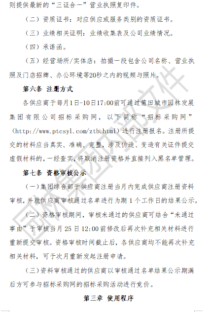 各供應(yīng)商: 本制度為莆田城市園林發(fā)展集團(tuán)有限公司內(nèi)部文件,僅供查閱,未經(jīng)書面授權(quán),各供應(yīng)商禁止以任何形式轉(zhuǎn)載、復(fù)制及商業(yè)使用,否則視為侵權(quán)!
